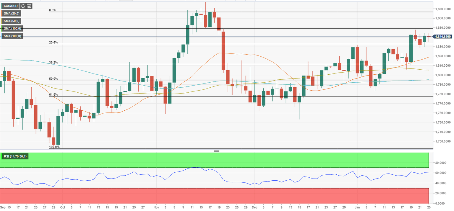 Gold closed the previous two weeks in the positive territory, gaining nearly 2% over the period. The violation of the 200-day SMA attracted technical buyers and retreating US Treasury bond yields provided an additional boost to XAU/USD. Before testing $1,850, however, the pair seems to have lost its bullish momentum, with investors remaining on the sidelines ahead of the US Federal Reserve’s policy announcements on Wednesday, January 26.