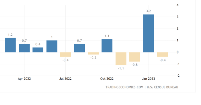 With this backdrop of bank failures, we saw US Retail Sales fall in February by 0.4%. Producer Prices Inflation also fell 0.1%.