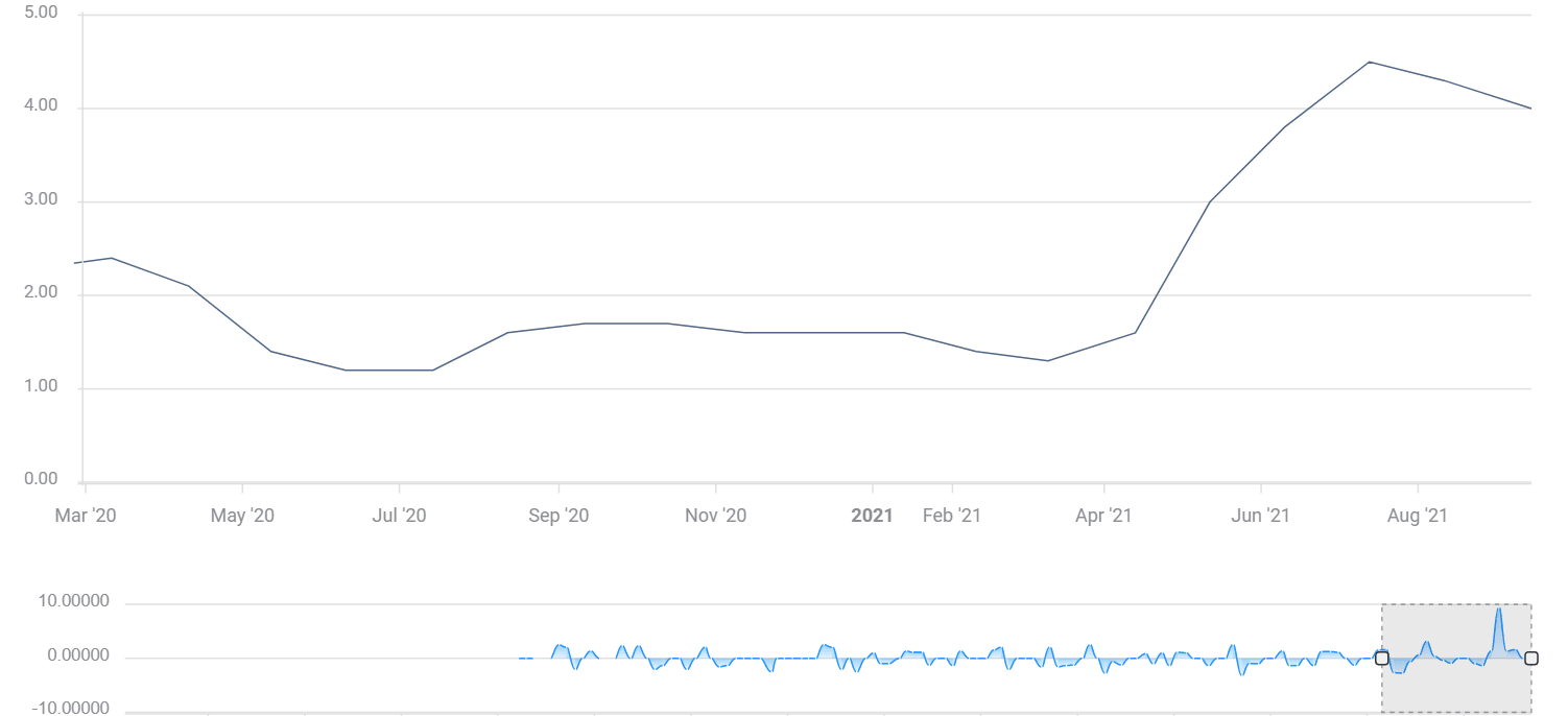 The Core Consumer Price Index (Core PCI) for last month also surprised to the downside, decelerating to 4%. That seems to vindicate Powell's insistence that inflation is transitory – the result of bottlenecks originating from the rapid reopening.