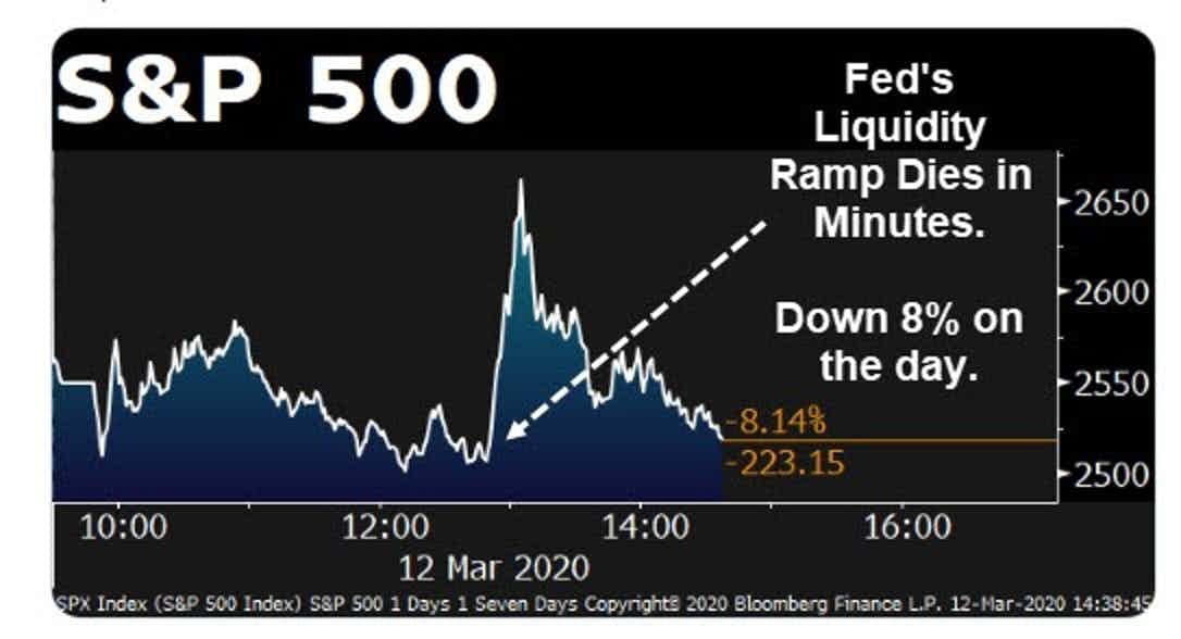 Although Fed stepped up to the plate today with $1.5 trillion in emergency liquidity, the market continued to dive.