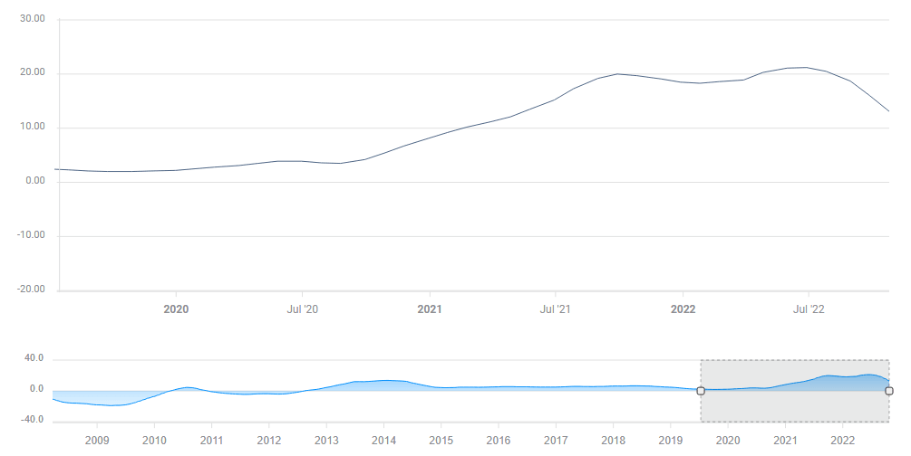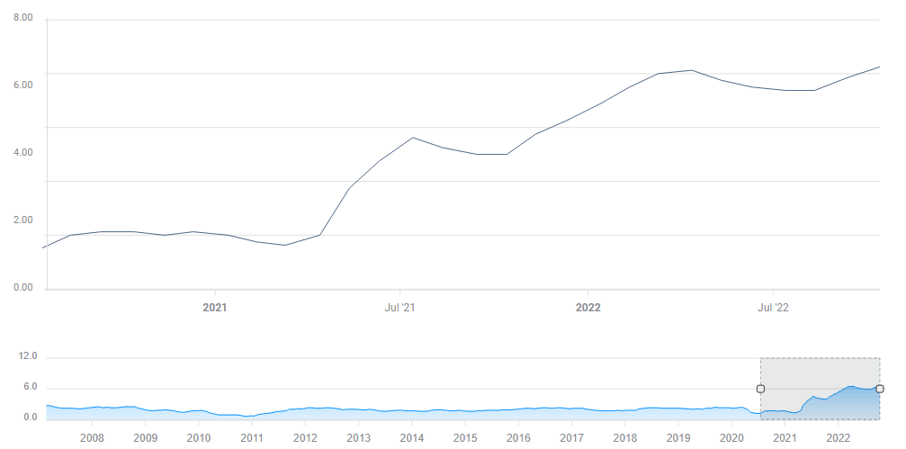 Super strong inflation figures published on October 13 raised expectations for a steep path of rate hikes, namely a 75 bps hike in December and even a small chance of a 100 bps move now. The peak, or terminal rate, hit 5% according to bond markets.