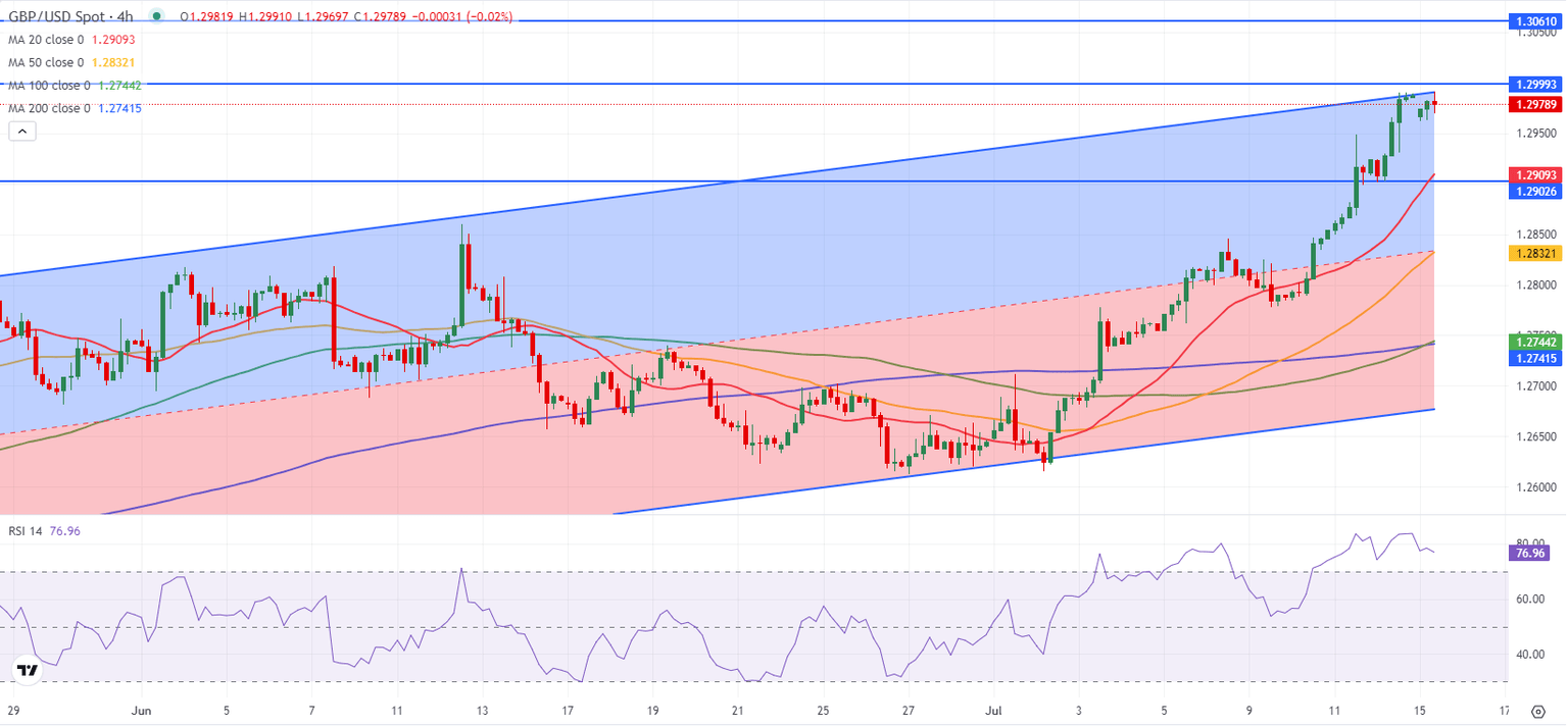 The broad-based selling pressure surrounding the US Dollar (USD) fuelled GBP/USD's rally last week. Softer-than-expected inflation data from June fed into expectations for a Fed rate cut in September and caused the USD to weaken against its rivals. According to the CME FedWatch Tool, the probability of the Fed leaving the policy rate unchanged in September is now less than 6%.