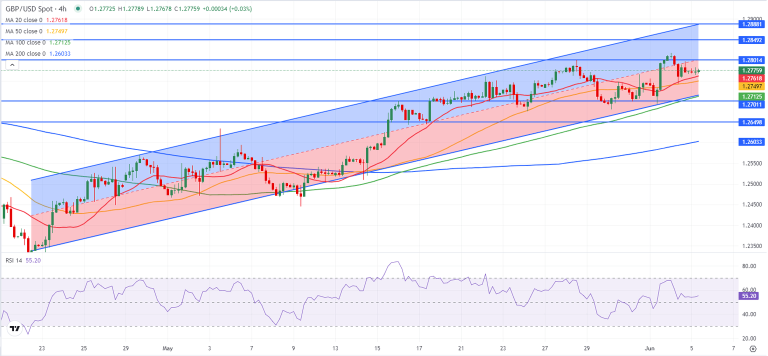On the upside, resistances could be seen at 1.2800 (mid-point of the ascending channel), 1.2850 (static level) and 1.2890 (upper limit of the ascending channel).