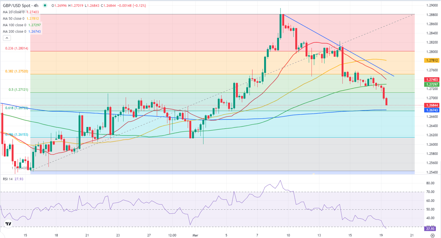 - GBP/USD declined below 1.2700 for the first time in nearly two weeks.