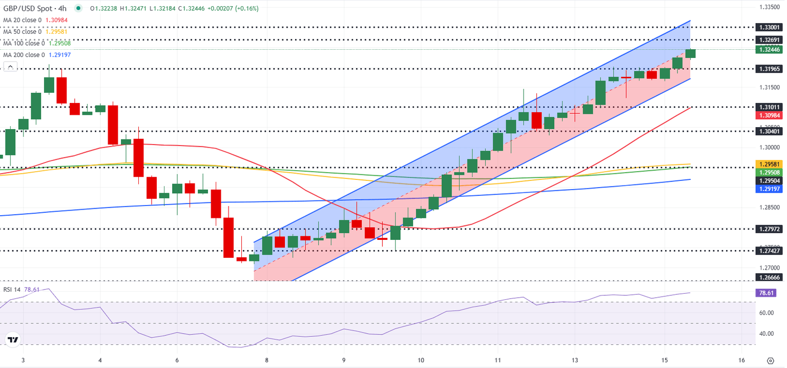 GBP/USD preserves its bullish momentum after posting gains for five consecutive days and trades at a fresh 2025-high near 1.3250 on Tuesday. The pair's technical picture points to overbought conditions.