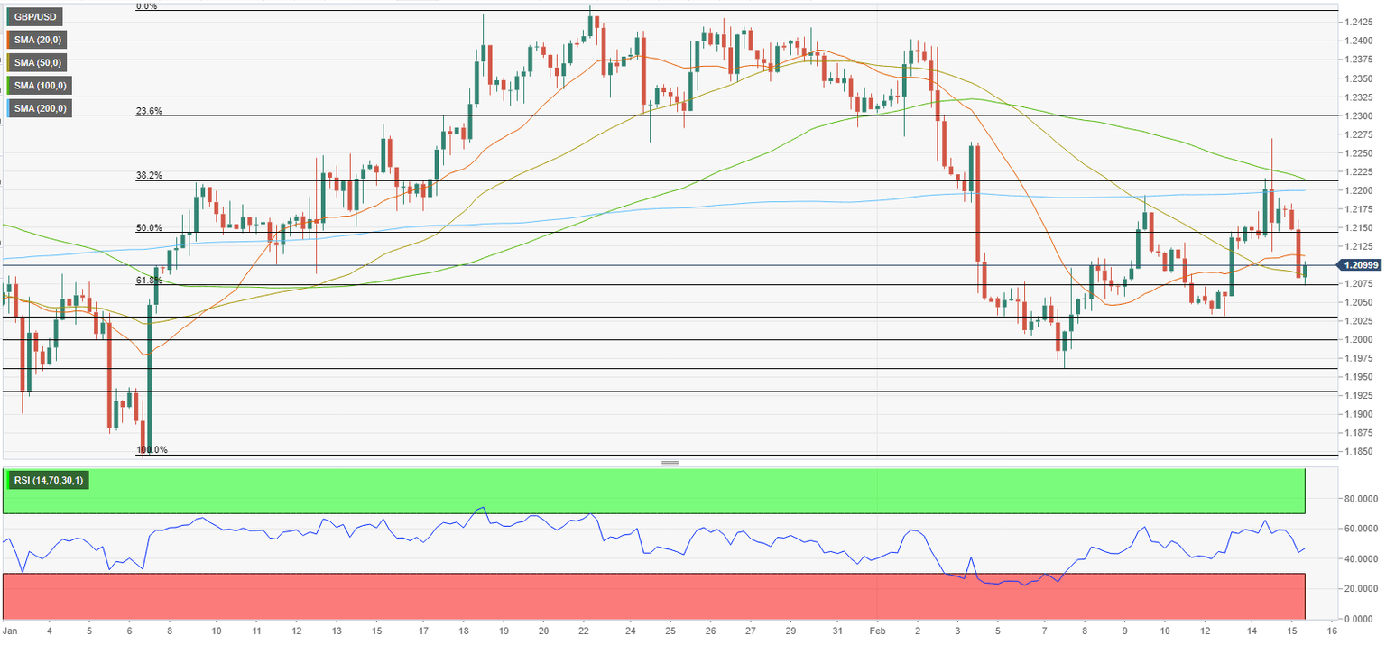 GBP/USD has extended its slide and declined below 1.2100 early Wednesday following the UK inflation data. The technical outlook points to a bearish tilt in the near term and a four-hour close below 1.2070 could open the door to additional losses.