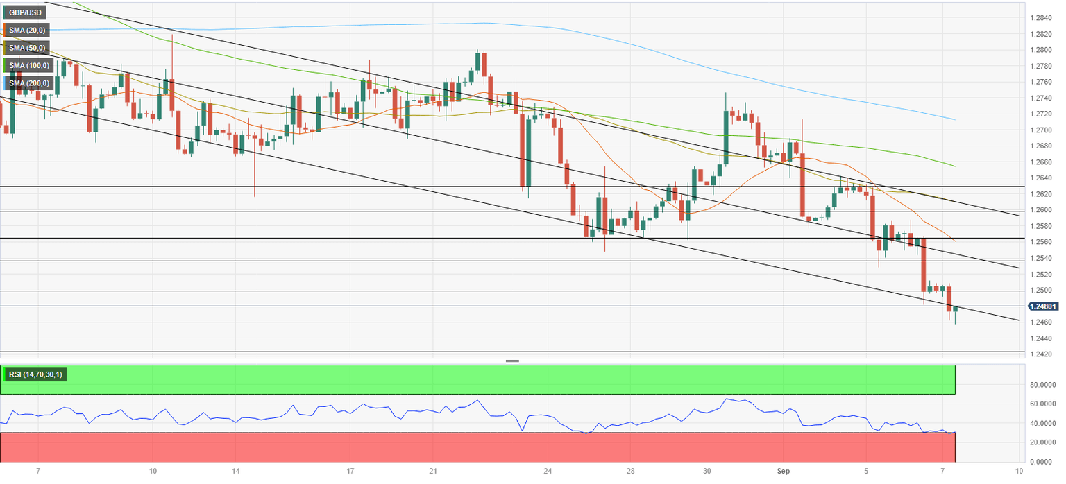 - GBP/USD dropped to a fresh three-month low below 1.2500 on Thursday.