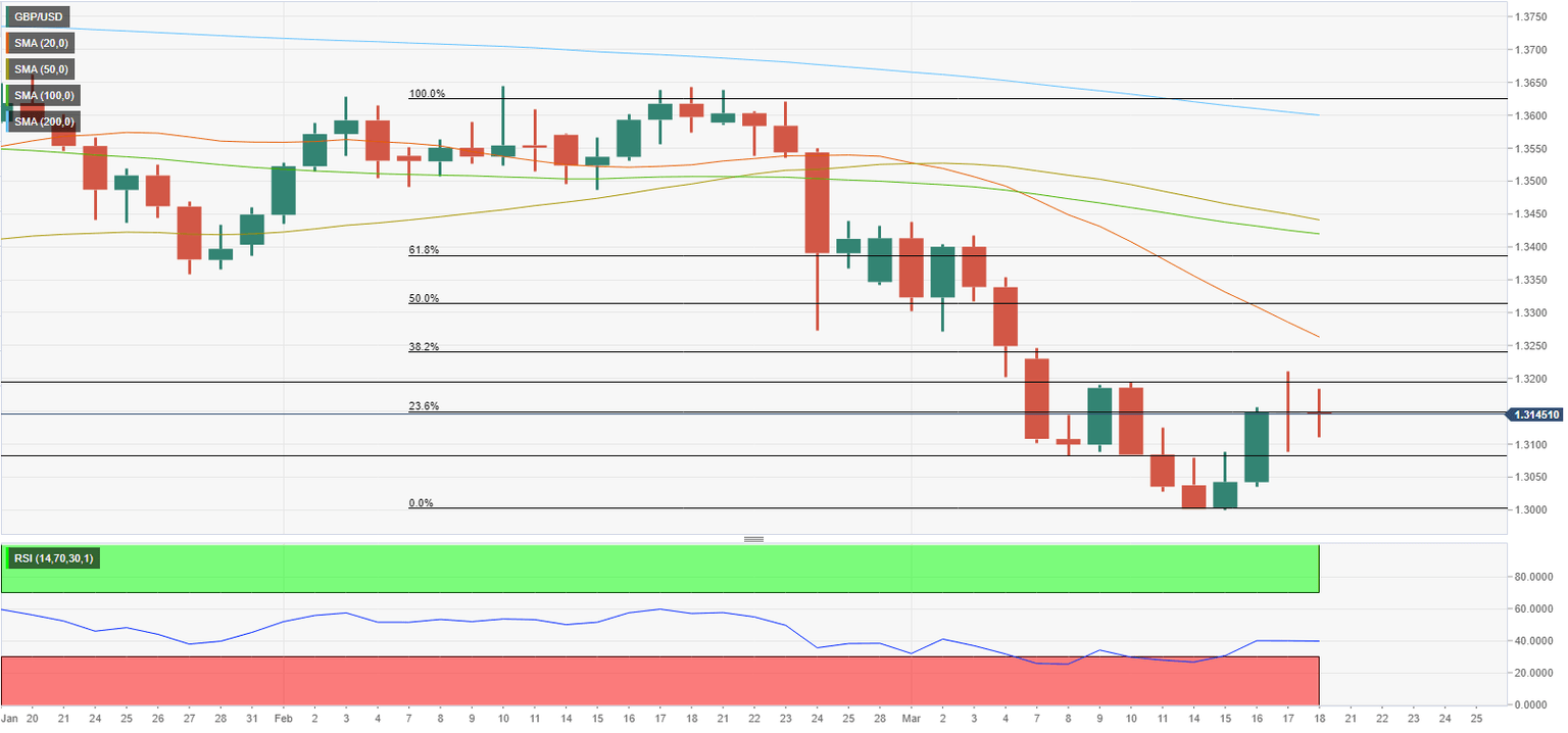 GBP/USD failed to find acceptance above 1.3200, as markets turned risk-averse yet again after officials from both sides reported no significant progress on the negotiations. US Secretary of State Antony Blinken said that Russia may be contemplating a chemical-weapons attack late Thursday. Traders also turned cautious, as US President Joe Biden met with his Chinese counterpart Xi Jinping on Friday to discuss Ukraine. King dollar attempted a comeback amid a damp mood, lack of relevant economic data and increased uncertainty surrounding the Russia-Ukraine conflict.