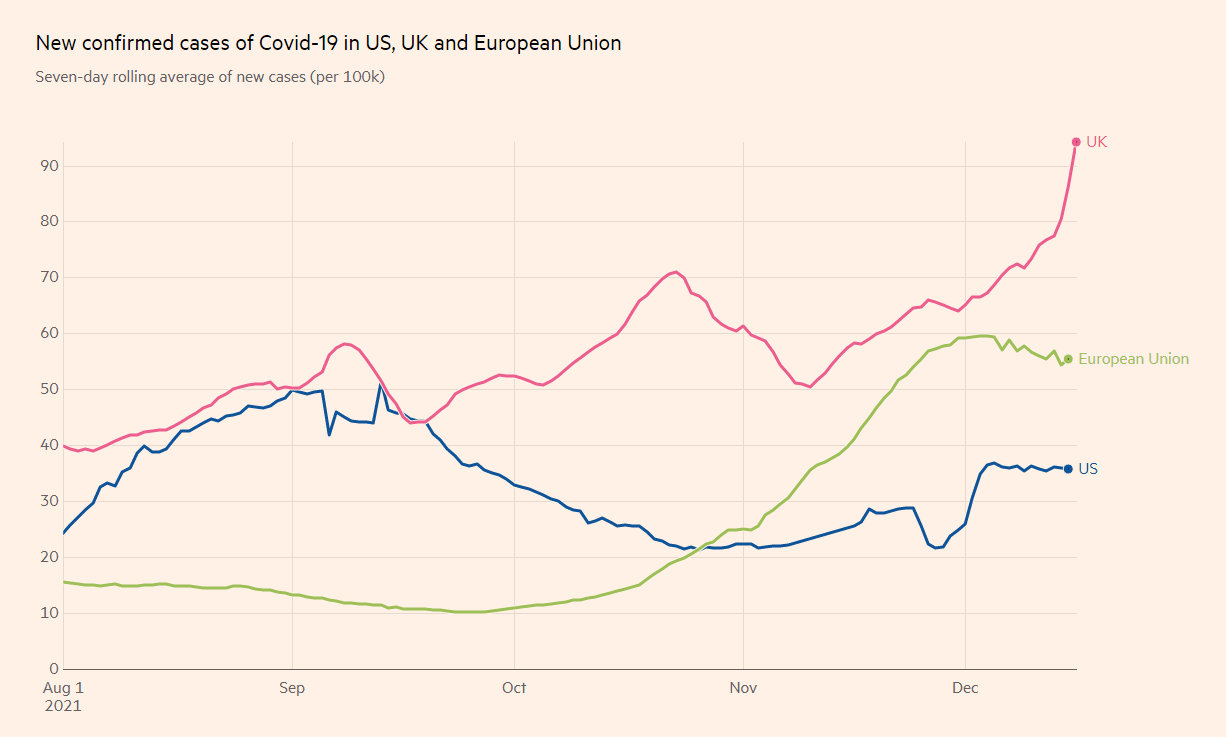 The rapid spread of the Omicron variant in the UK and elsewhere had a mixed effect on markets. There are no doubts about the strain's high contagion, but hope about lower severity and sufficient efficacy of booster shots to cope with it continue emerging.
