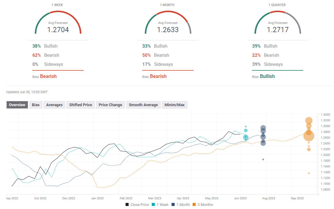 A large number of experts polled by FXStreet expect GBP/USD to stretch lower next week. The one-month outlook paints a similar picture with the average target aligning at around 1.2630.
