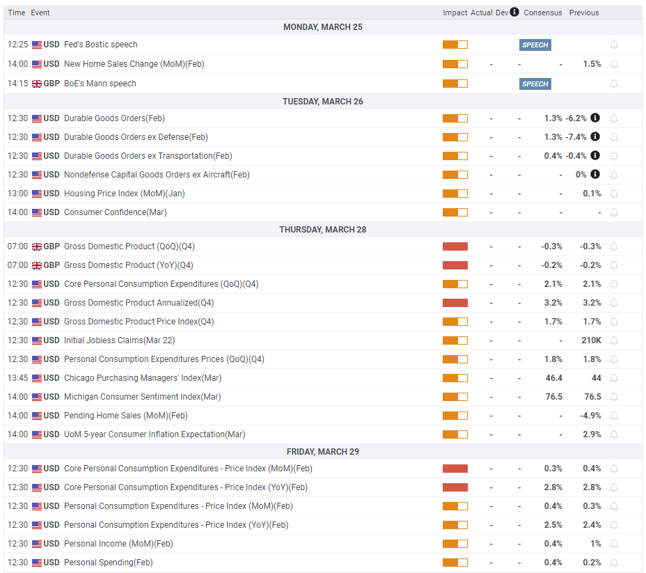 During the week, there are no top-tier economic data from the UK but the US calendar will feature Durable Goods Orders on Tuesday.