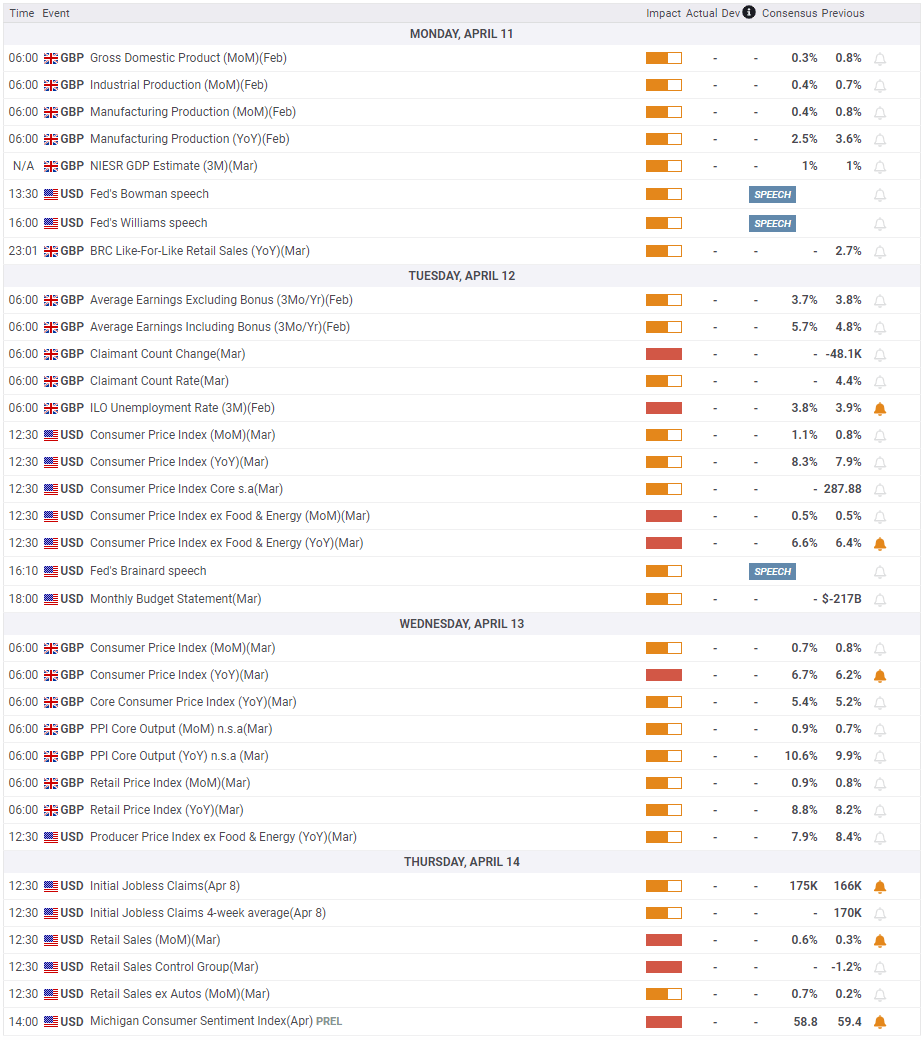 Monday sees the UK monthly GDP dropping alongside the country’s Manufacturing and Industrial output data. The EU is set to discuss further sanctions on Monday, with an oil embargo on Russia likely on the cards.