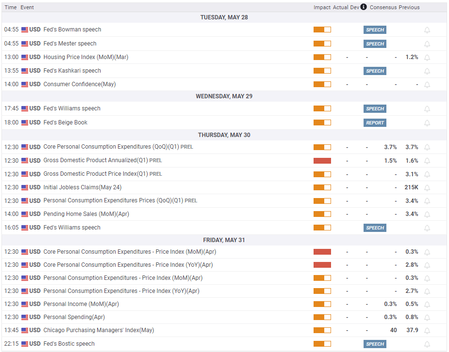 It's yet another holiday-shortened week, as the US and the UK traders will be away on Monday, enjoying their Memorial Day and Spring Bank Day long weekend, respectively.