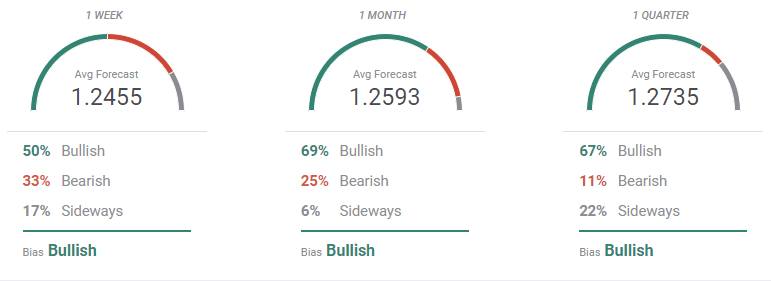 According to the FXStreet Forecast Poll, the GBP/USD pair could recover ground in the upcoming weeks. The pair is seen on average at 1.2455 next week while averaging 1.2735 in the three-month perspective. The number of buyers increases as time goes by, while sellers decrease from 33% in the weekly outlook to 11% in the quarterly one.