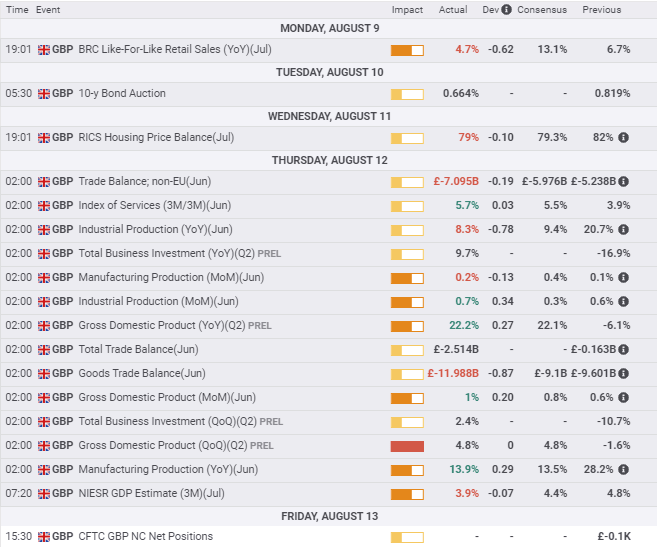 The UK has a busy week on tap with unemployment for June and inflation and Retail Sales figures for July.