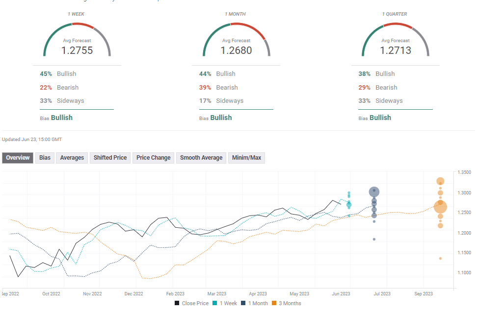 The FXStreet Forecast Poll highlights a slightly bullish bias in the near term, with the one-week average target aligning near the mid-1.2700s. The one-month outlook has improved relative to last week, probably after the BoE surprise. The one-quarter average forecast is slightly above 1.2700, around current levels