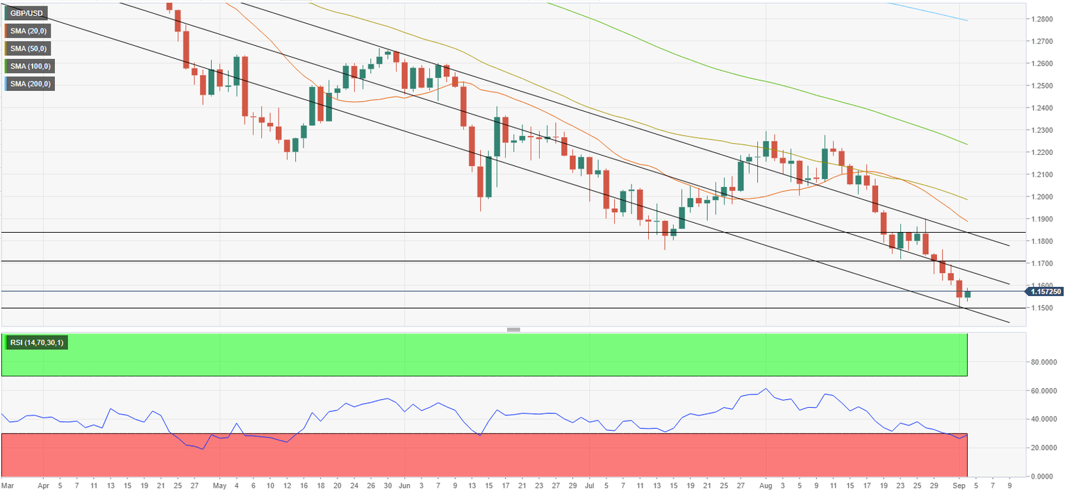 - GBP/USD extended its three-week losing streak towards the March 2020 low of 1.1411.