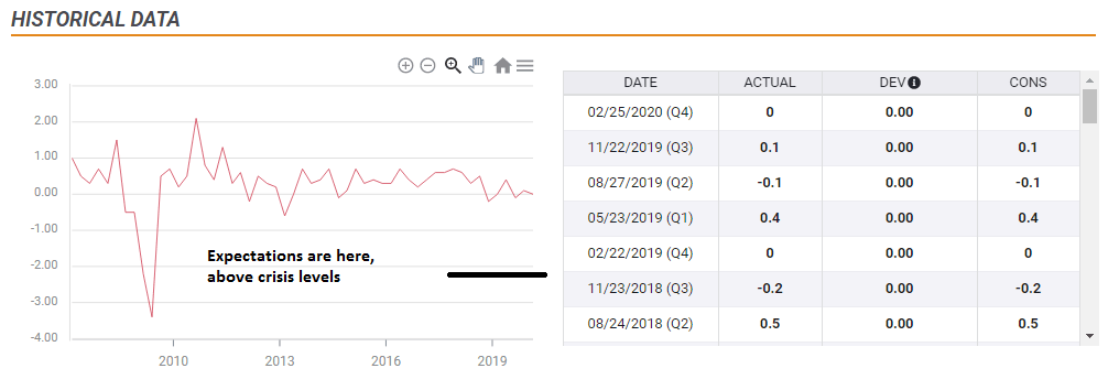 The currency pair has room to rise only in the unlikely scenario of an upside beat, preferably contraction of less than 2%. A surprising outcome – albeit being temporary ahead of a horrible second quarter – would boost EUR/USD, at least temporarily.