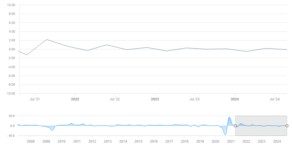 A 0.1% drop in output, as economists expect, would weigh on the Euro (EUR), even if it would merely match expectations. Even a no-change figure would fail to inspire because barely avoiding an official recession is uninspiring and it doesn’t change the big picture of a struggling economy.