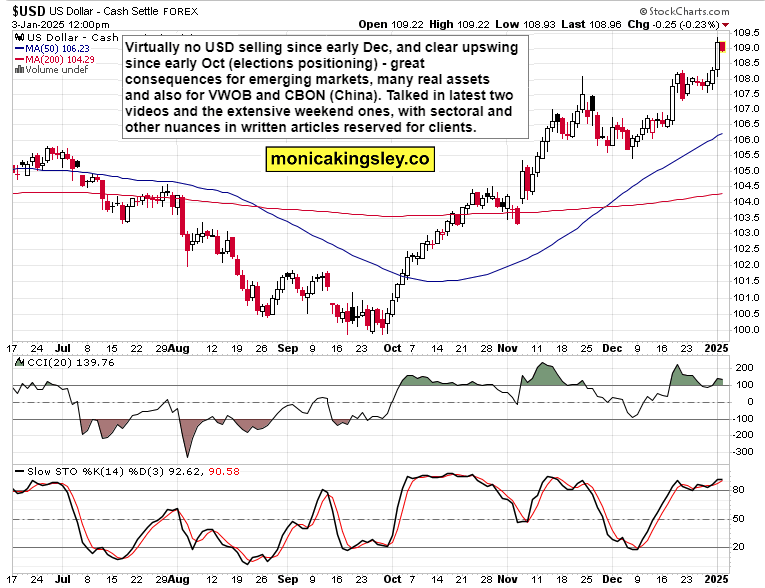 And what did I bring up in today‘s quick premarket video to whet your appetite? Let‘s delve into what rising USD means for stocks, gold, silver, oil and copper – starting with the dollar chart.