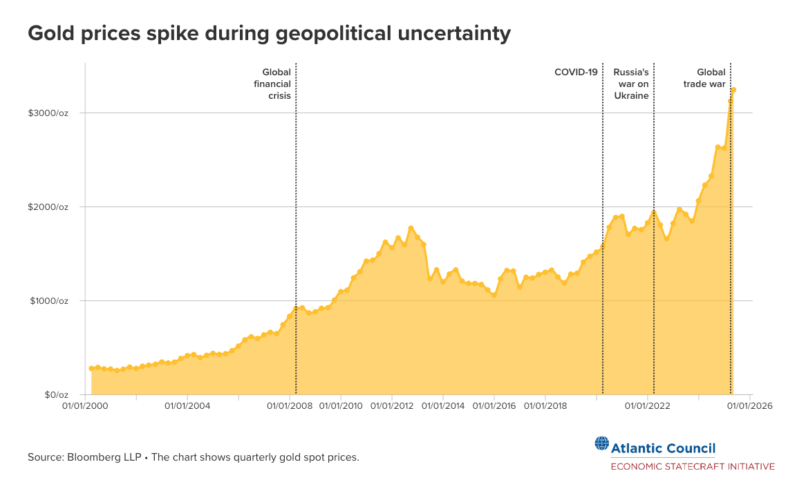 “The United States has the power to indirectly reduce gold prices and encourage the adoption of dollar-backed assets by returning to being the provider of stability in the global economy. That can be achieved by dialing down the use of tariffs and other economic measures that could cause governments and private actors to turn to gold.”