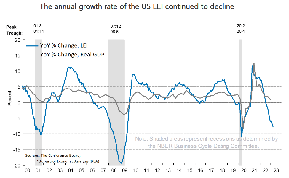 “The Conference Board forecasts that economic weakness will intensify and spread more widely throughout the US economy over the coming months, leading to a recession starting in mid-2023.”