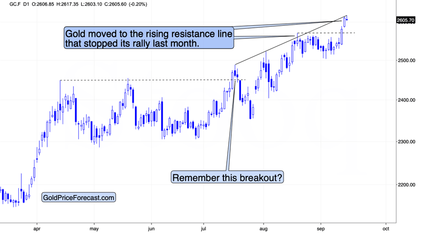Today is the third trading day after the breakout, and as you can see on the above chart, the previous breakout was invalidated on the fourth day after it – in a major way.