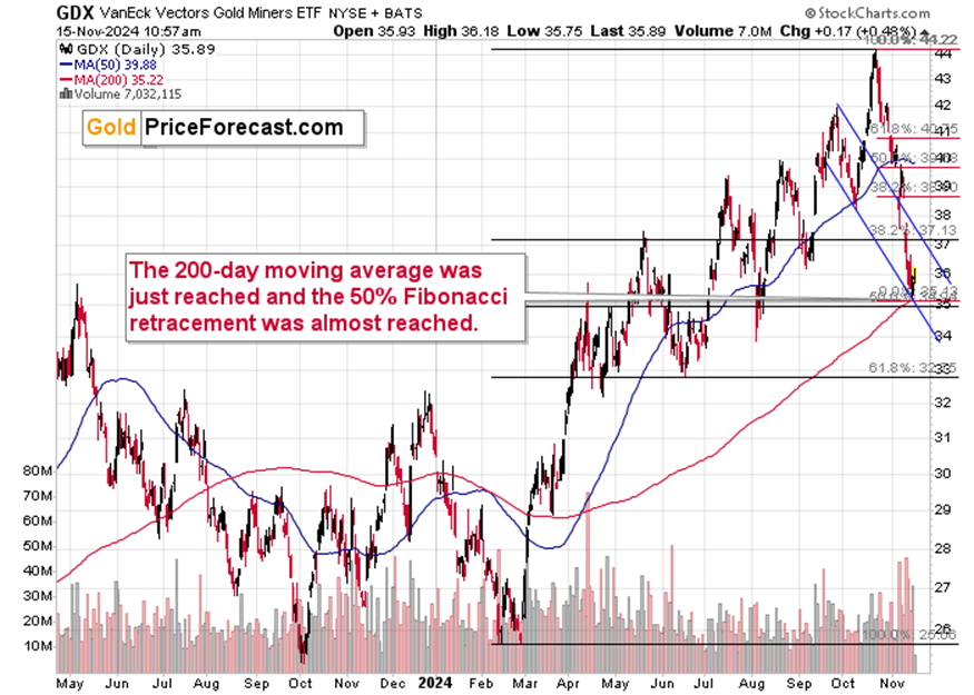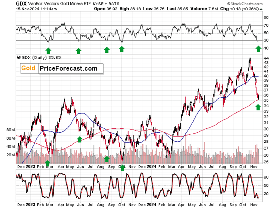 The GDX ETF rallied right after (precisely) touching its 200-day moving average. That’s what also triggered the rally in March and also in early and mid- 2023.