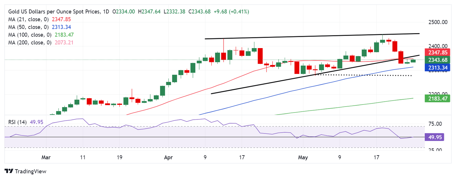 However, it remains to be seen if Gold price can sustain the rebound, as markets continue to trim their expectations of interest rate cuts by the US Federal Reserve (Fed) this year. It’s worth noting that thin liquidity could exaggerate Gold price movements. Both the UK and the US markets are closed on Monday, in observance of the Spring Bank Holiday and Memorial Day.