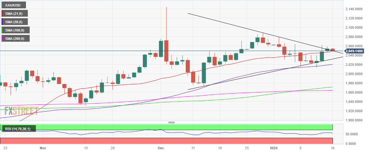 Gold price is challenging the $2,050 barrier early Tuesday, feeling the heat from resurgent US Dollar (USD) demand amid a further escalation in the Middle East geopolitical tensions.