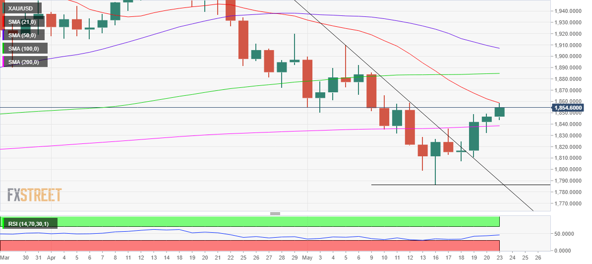 Gold Price Forecast: Can XAUUSD extend beyond 21-DMA amid firmer yields?