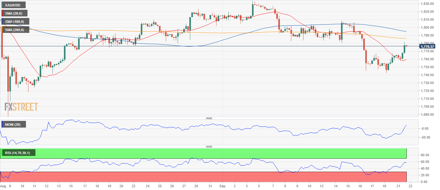 Investors moved away from the greenback as fears receded and as the US Federal Reserve kick-started its two-day meeting on monetary policy. The central bank will announce its decision with fresh economic projections on Wednesday, and some market participants still expect hints on tapering. The possible timeline is critical as if policymakers decide to start trimming its stimulus program before year-end, XAU/USD could take a turn for the worse.