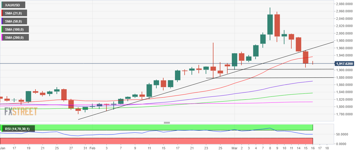 Gold Price Forecast: March lows remain in sight near $1,900 ahead of Fed