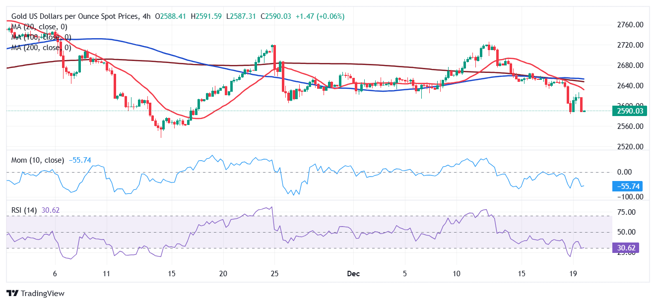 Spot Gold came under selling pressure early in the American session after peaking at $2,626.31 during European trading hours. The US Dollar (USD) shed some ground throughout the first half of the day after reaching extreme overbought conditions in the Federal Reserve’s (Fed) aftermath. The United States (US) central bank delivered a hawkish cut, trimming the benchmark interest rate by 25 basis points (bps), while scaling back policymakers’ perspective on potential cuts in the upcoming years.