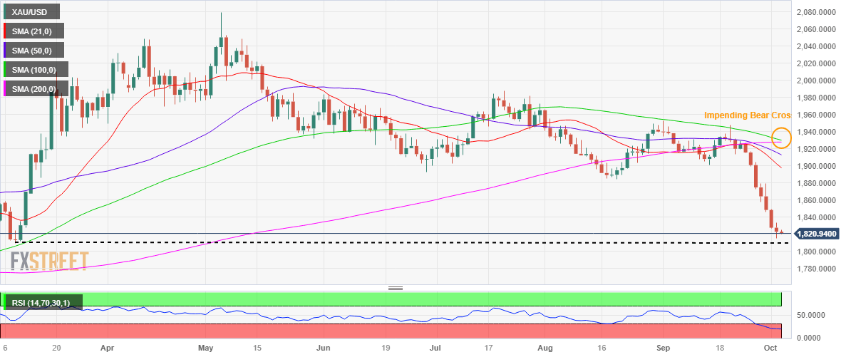 The unrelenting upsurge in the US Dollar and the US Treasury bond yields fuelled another leg down in the non-interest-bearing Gold price. The bright metal hit a fresh seven-month low at $1,815 before attempting a modest recovery.