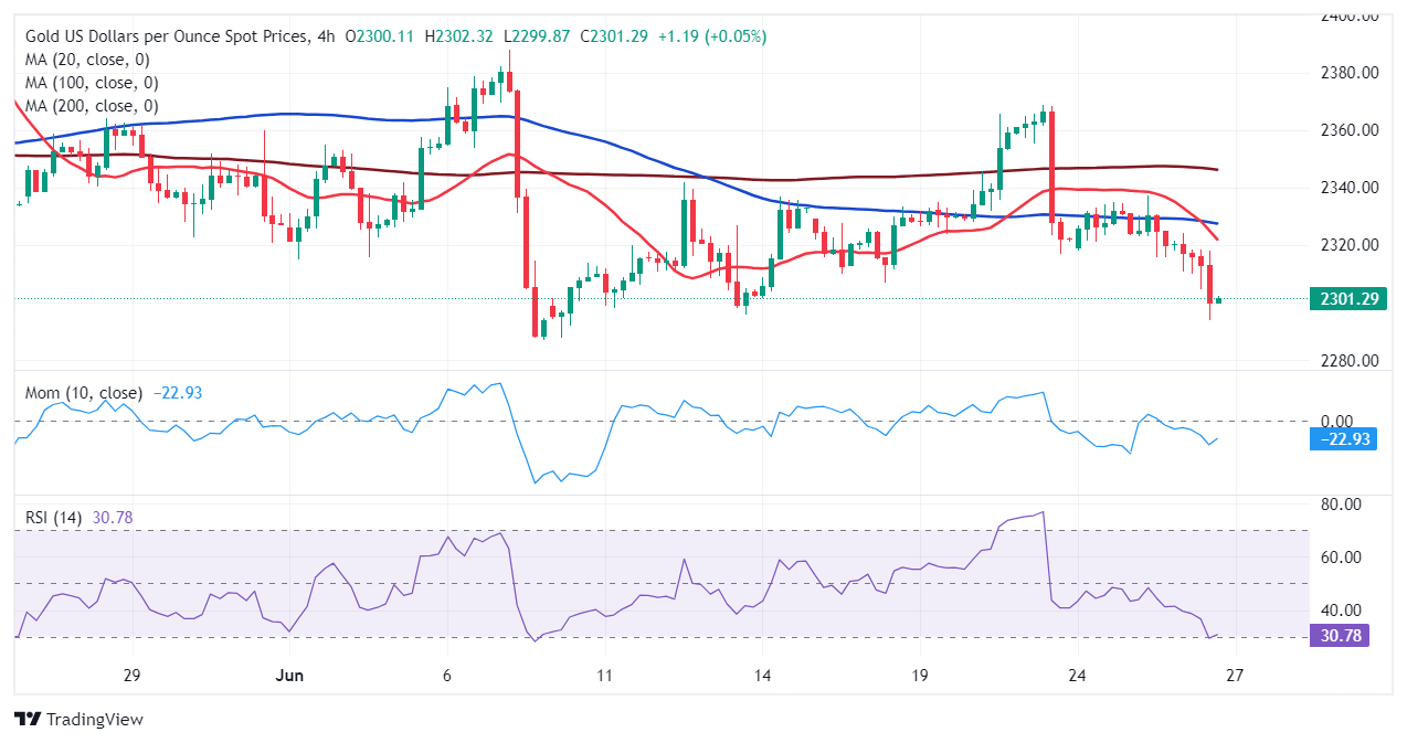 - XAU/USD maintains the downward route and challenges the $2,300 threshold.