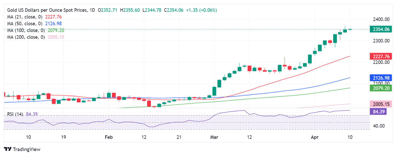 Gold buyers continued to shrug off the extremely overbought 14-day Relative Strength Index (RSI) conditions, as they clinched another record high at $2,365 on Tuesday.