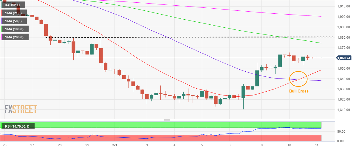 These fundamental catalysts rendered negative for the US Dollar and the US Treasury bond yields, motivating Gold buyers to hold near the weekly highs above $1,860. Further upside in Gold price, however, remained capped, as traders erred on the side of caution ahead of Wednesday’s critical US Producer Price Index (PPI) inflation data and the Minutes of the Fed’s September policy meeting.