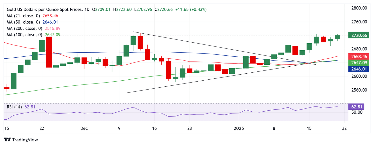 Gold price eyes acceptance above the key static resistance at $2,726 to extend the uptrend toward the $2,750 psychological barrier. The next target is aligned at the record high of $2,790.