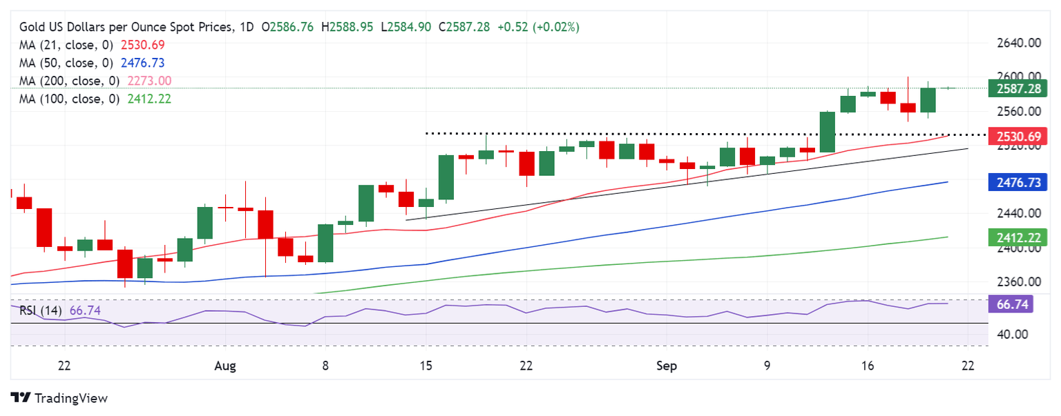 - Gold price consolidates below record highs at $2,600 early Friday, as Fedsepak awaited.
