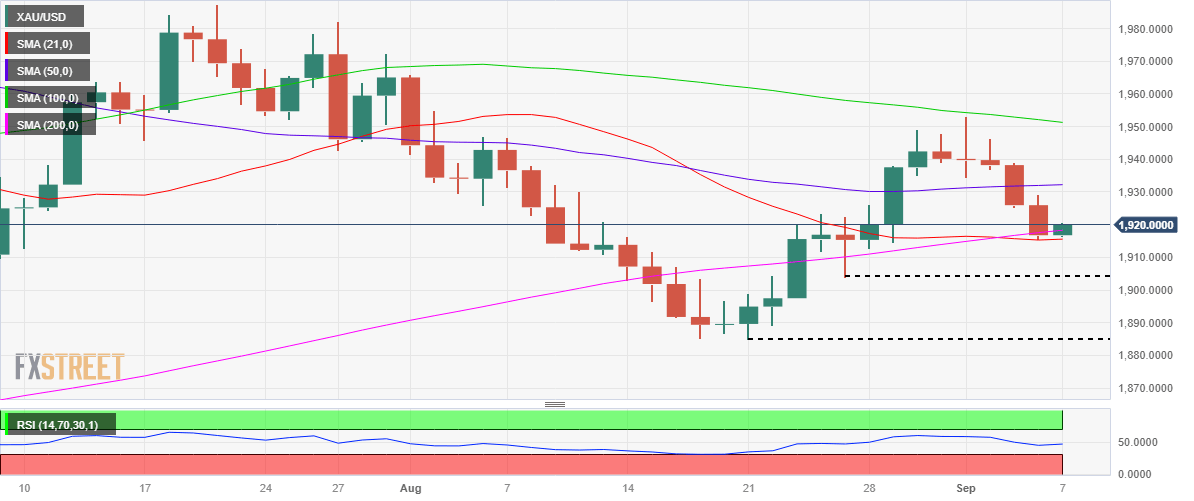 Gold price has found fresh buyers once again near $1,915, making a minor recovery attempt early Thursday. The United States Dollar (USD) is in a bullish consolidation phase near six-month highs, as US Treasury bond yields take a breather ahead of US economic data and Fedspeak.