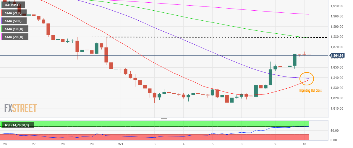 Acceptance above the $1,865 level could trigger a fresh upswing toward the key resistance at $1,880, which is the intersection of the beairsh 100 SMA, September 28 and 29 highs.