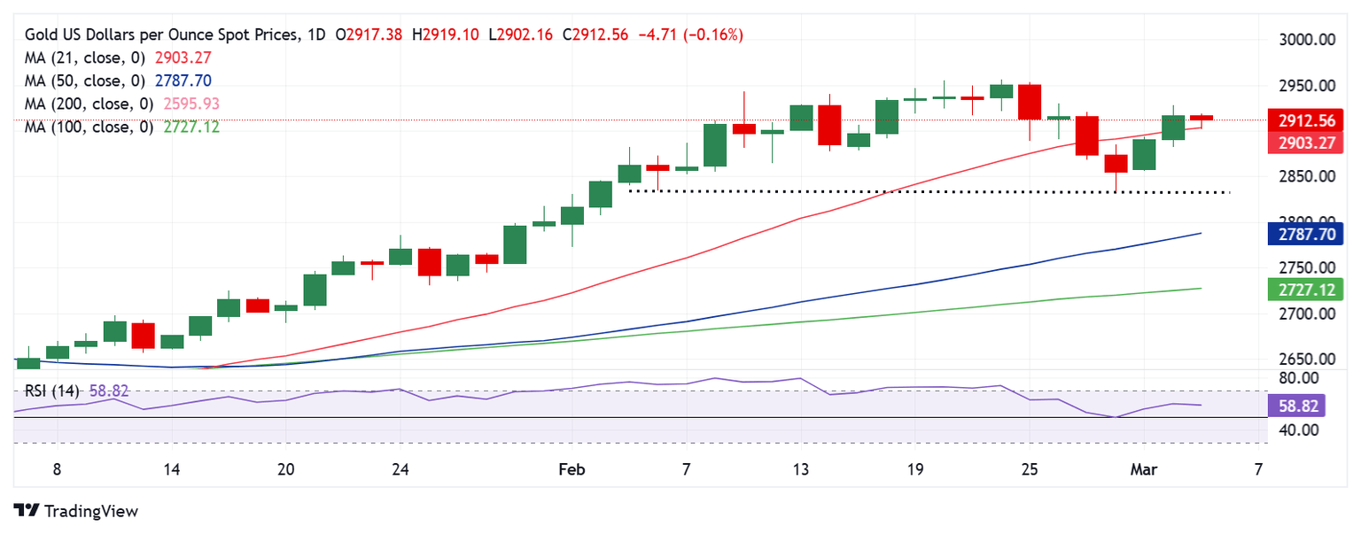 - Gold price recaptures 21-day SMA at $2,903 as the daily technical setup still leans bullish.