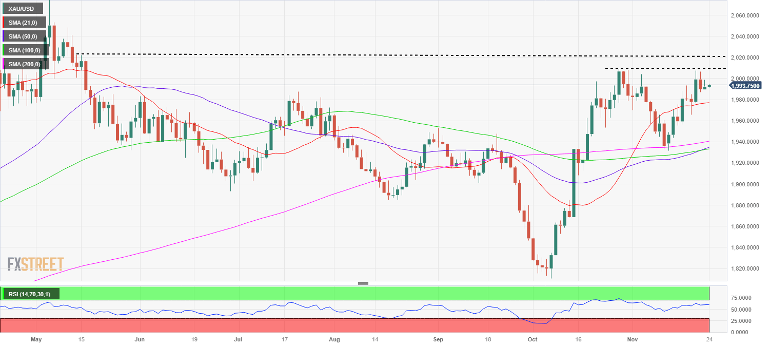 Gold Price Forecast: XAU/USD eyes acceptance above $2,000 amid bullish technical setup