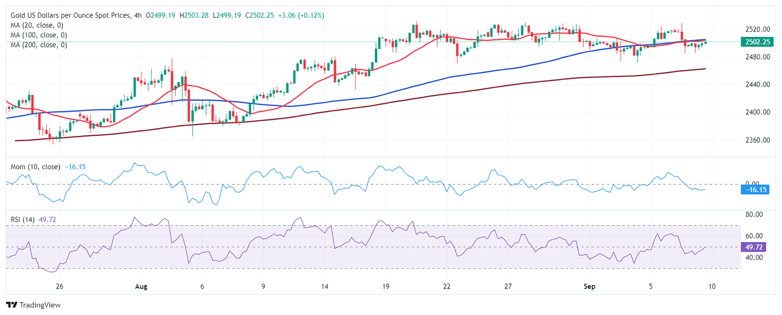 Spot Gold trades just around the $2,500 mark, unchanged on Monday and confined to a tight intraday range. The bright metal peaked at $2,505.18 early in the American session, as Treasury yields started the day with a positive footing. The United States (US) 10-year note peaked at 3.76% but then trimmed gains and currently stands at 3.70%.