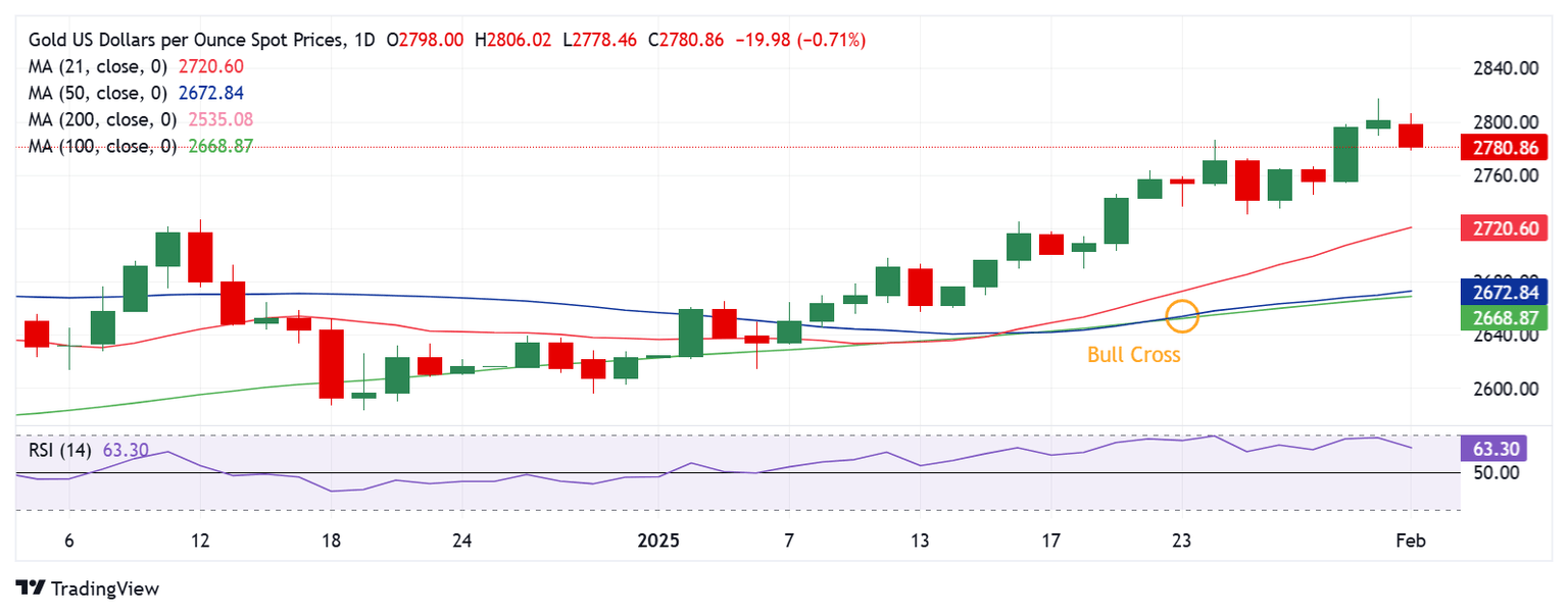 Gold price needs a sustained move above the $2,800 level to retest the all-time highs of $2,817. The next topside barrier is at the $2,850 psychological level.