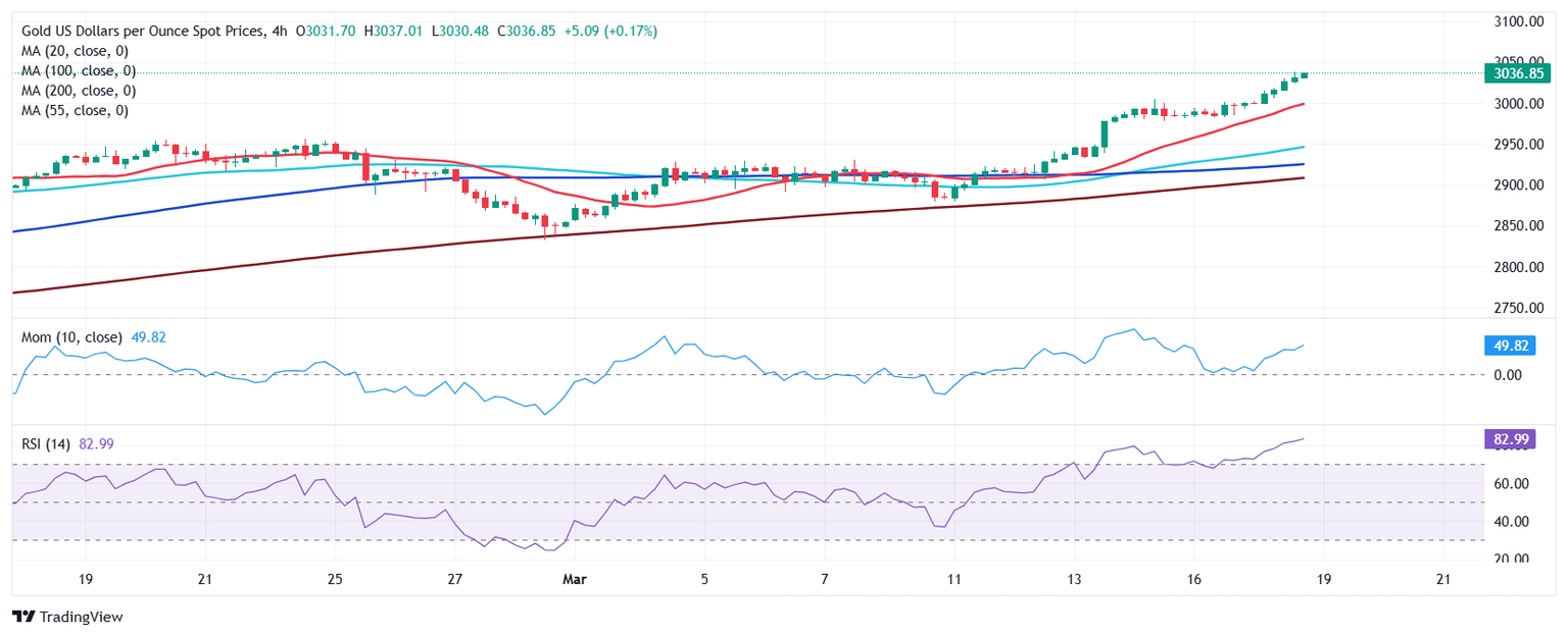 XAU/USD reached a fresh all-time high of $3,038.33 on Tuesday, trading nearby in the mid-American session. The bright metal benefited from mounting geopolitical jitters on different fronts.