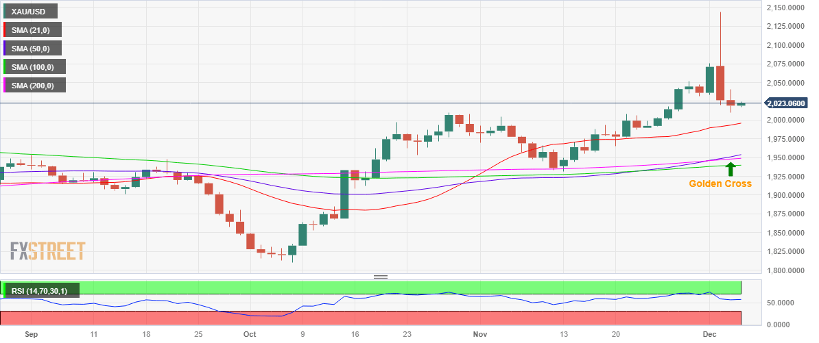 - Gold price is licking its wounds near $2,020 amid a broad retreat in the US Dollar.