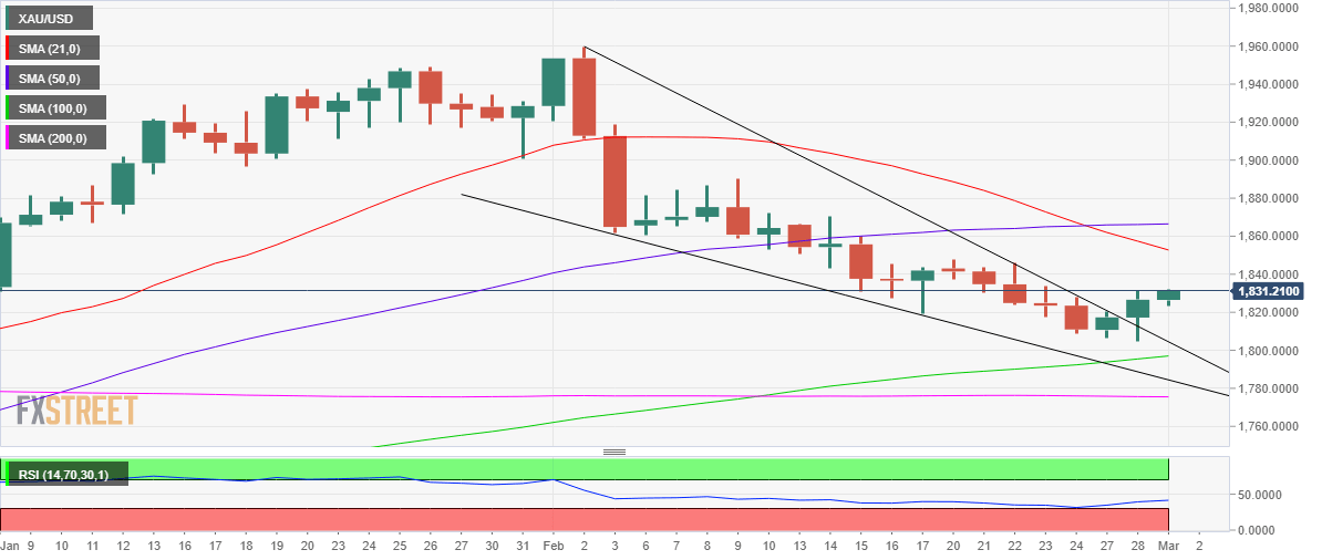 Gold price has managed to regain the $1,830 on its road to recovery, sitting at the highest level in four trading days. The upside bias in the Gold price remains intact, as the United States Dollar (USD) has entered a consolidative mode after reaching seven-week highs.
