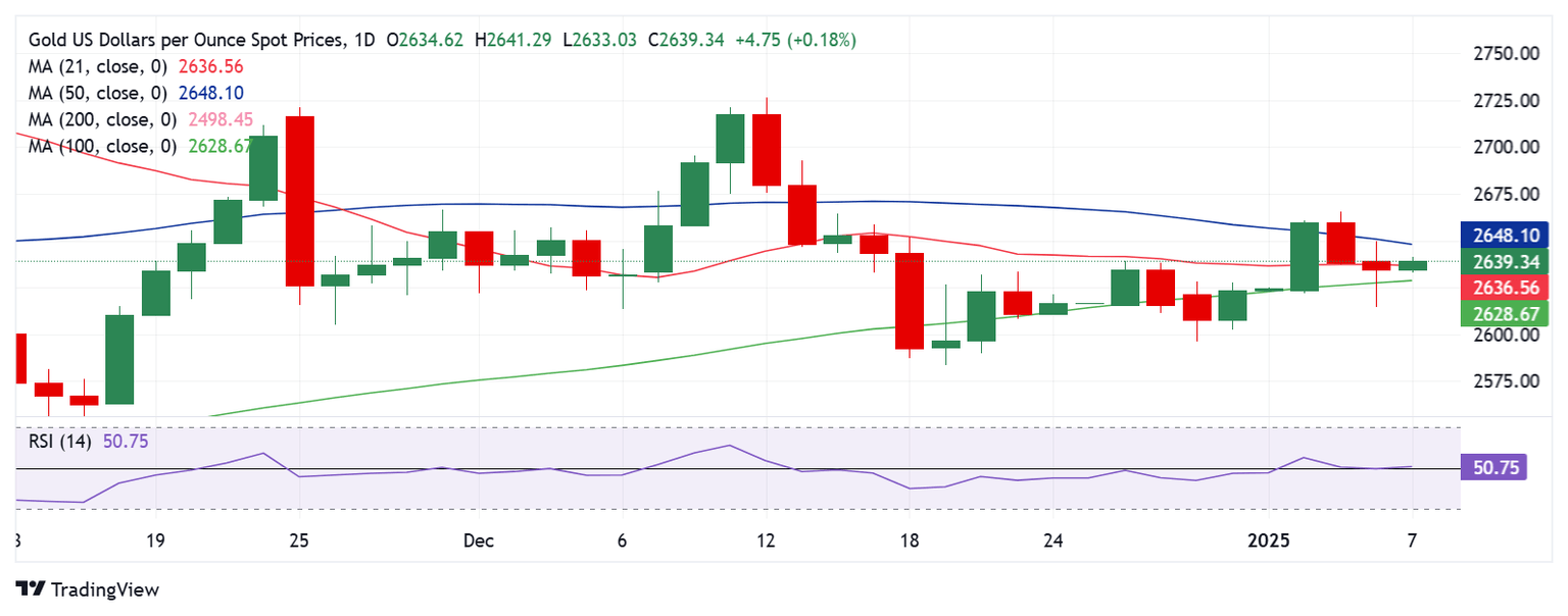 In doing so, Gold price clings to the 21-day Simple Moving Average (SMA) at $2,636 after failing to sustain above it on a daily closing basis on Monday.